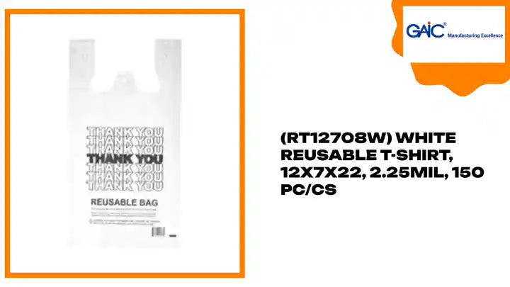 (RT12708W) White Reusable T-shirt, 12x7x22, 2.25mil, 150 pc/cs