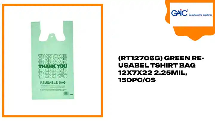 (RT12706G) Green Re-Usabel TShirt Bag 12x7x22 2.25mil, 150pc/cs