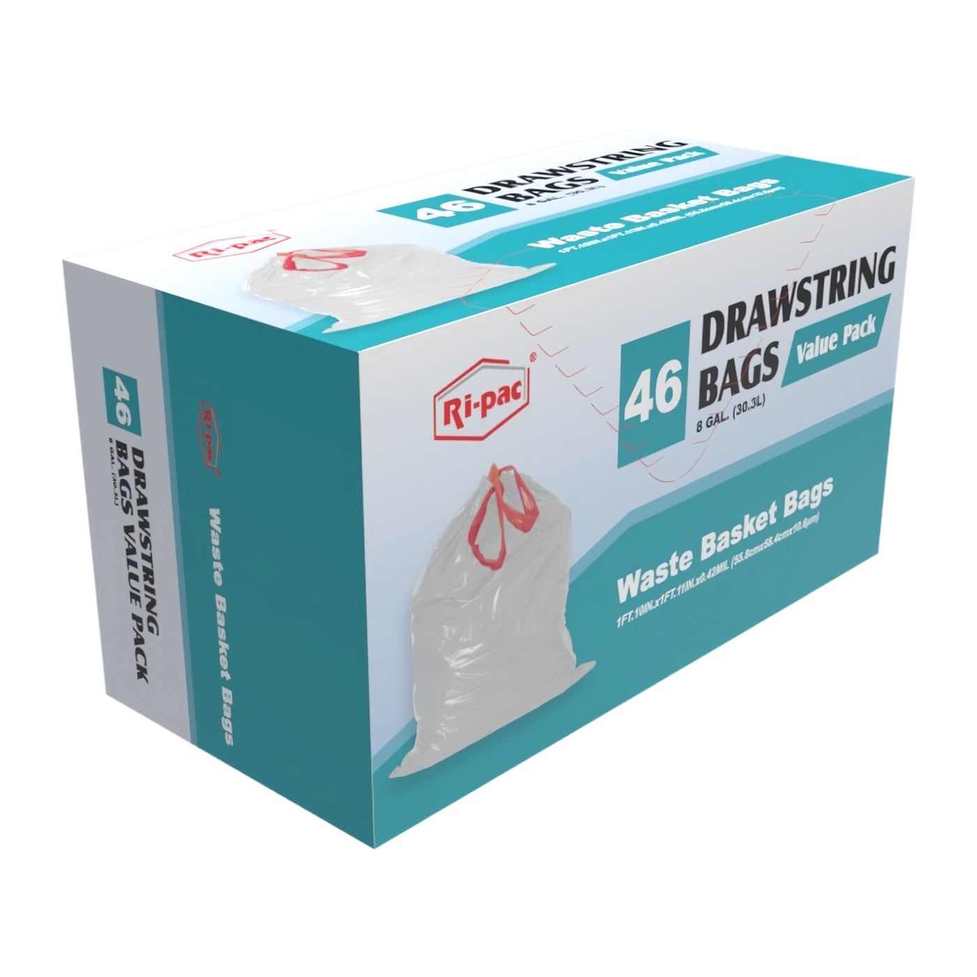 8 加仑抽绳超值装废纸篓袋,方便系带和携带的户外垃圾袋,184 个